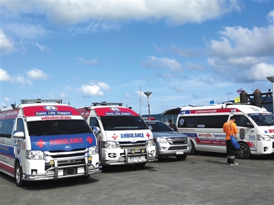 目前,普吉島查龍碼頭是搜救展開作業的地方,設有營救指揮部,內部配有醫護人員、旅游警察以及軍方人員,外面還有5輛救護車待命。當天普吉島天氣晴好,站在碼頭可看到大皇帝島,乘快艇二十分鐘便可抵達事發地附近。