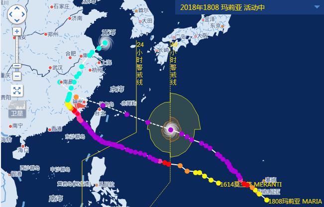 臺(tái)風(fēng)“瑪莉亞”和“莫蘭蒂”的移動(dòng)路徑圖