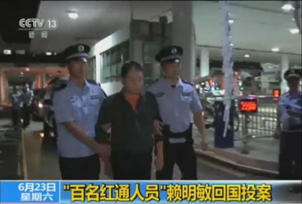 2018年6月22日,中國銀行江門分行原行長賴明敏回國投案自首,并主動退贓,成為國家監委成立后首個到案的“百名紅通人員”。