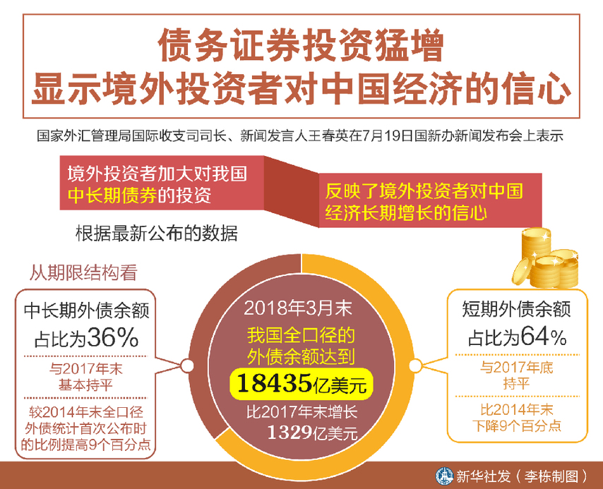 新華社北京7月19日電(記者劉開雄)“我們觀察新增長的外債中,有八成是債務(wù)證券。”國家外匯管理局國際收支司司長、新聞發(fā)言人王春英在19日國新辦新聞發(fā)布會(huì)上表示,境外投資者加大對(duì)我國中長期債券的投資,反映了境外投資者對(duì)中國經(jīng)濟(jì)長期增長的信心。