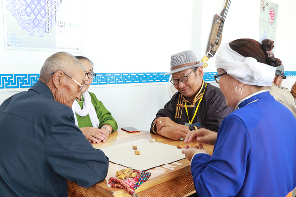 在錫林浩特市愛(ài)祺樂(lè)牧民養(yǎng)老園區(qū),記者看到了這樣的畫面:身著鮮艷蒙古族服裝的老人們,三五成群聚在一起,唱歌、跳舞、練書(shū)法、玩沙嘎、縫制民族服飾……生活豐富多彩!當(dāng)天正值園區(qū)開(kāi)那達(dá)慕,跟草原上的那達(dá)慕大會(huì)不同,這里是專門為園區(qū)的老人而開(kāi)。“老人們歲數(shù)大了,不能出遠(yuǎn)門去看那達(dá)慕,我們就專門為他們辦了一個(gè),腿腳不好的老人也能看。”錫林浩特市巴彥查干街道黨工委書(shū)記額爾德木圖說(shuō)。