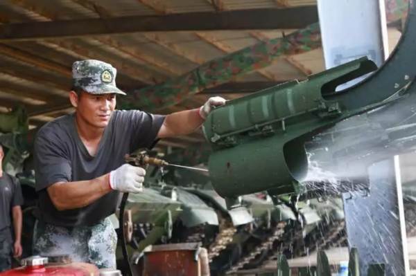 按照規(guī)定,訓(xùn)練完畢后,需對(duì)戰(zhàn)車進(jìn)行清理保養(yǎng),小編也想上去幫幫忙,手接觸到坦克鋼鐵蓋時(shí),一下子被燙的縮了回來(lái)。