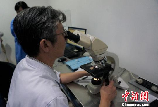 浙江省腫瘤醫院病理科主治醫師尹文娟正在取材。 張詩雨 攝