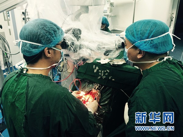 援藏醫生與那曲本地醫生在合作進行手術(2017年11月24日攝)。 新華社發