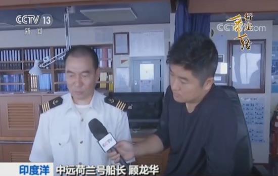 中遠荷蘭號船長 顧龍華:“這條航線是亞歐之間最核心的商業航線,別看我們現在在印度洋上, 但通過我們的電子海圖可以看到,在我們的左前方有一艘和我們同向的,它也是到歐洲去的。還有在我們的右上方,兩艘對開的,它們是開往亞洲方向的。這條航線上比如馬六甲海峽,和我們即將進入的地中海海域,在我們熒光屏上幾十艘甚至上百艘都是很正常的。”