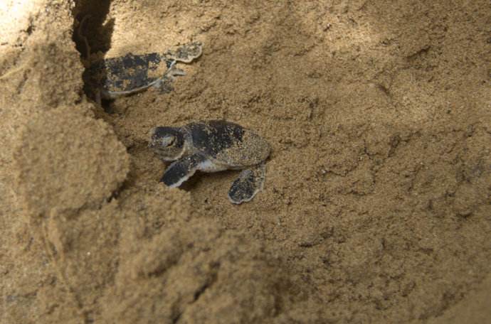 斯里蘭卡綿長(zhǎng)的海岸線是海龜?shù)奶烊痪奂兀欢缃襁@一海洋“活化石”的數(shù)量正在急劇減少。原本,小海龜?shù)某苫盥示蜆O低,大約1000只海龜卵才能孵化出1只小海龜。近年來海龜生存越發(fā)艱難,被漁網(wǎng)纏住、偷捕行為屢禁不止以及度假村的擴(kuò)張等,都讓剛出殼的小海龜在回歸大海的短短路途中喪命。