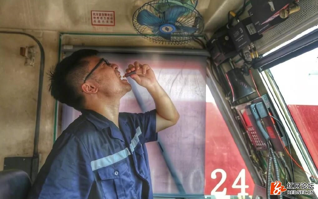 庫內的機車車廂如同“蒸桑拿”,登車作業前,都會喝一支藿香正氣液,提前做好防暑工作。