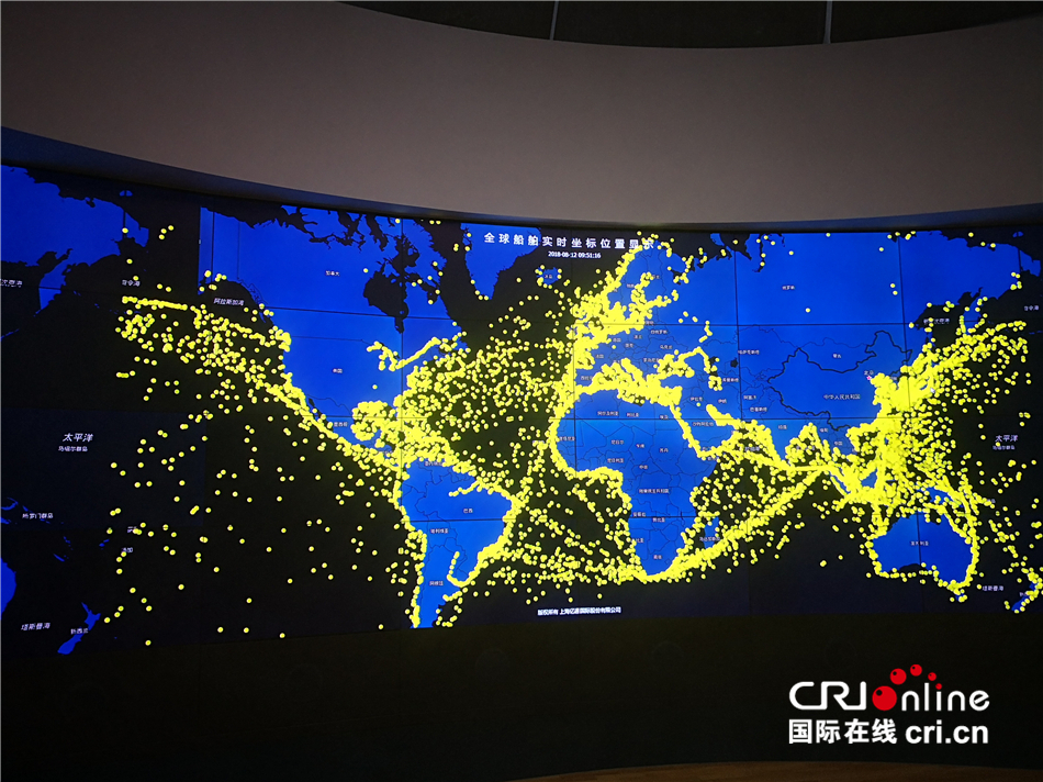 在上海國際貿易單一窗口運營方、上海億通公司的電子大屏上,密密麻麻的黃色光點顯示著全球船舶的實時坐標位置、上海口岸業務動態等關鍵信息。