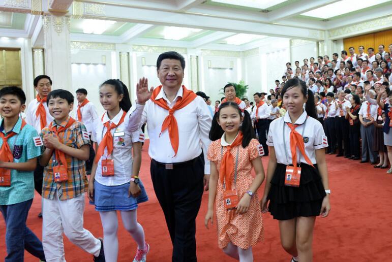 2015年6月1日,習(xí)近平在北京人民大會(huì)堂親切會(huì)見中國(guó)少年先鋒隊(duì)第七次全國(guó)代表大會(huì)全體代表。新華社記者王曄攝
