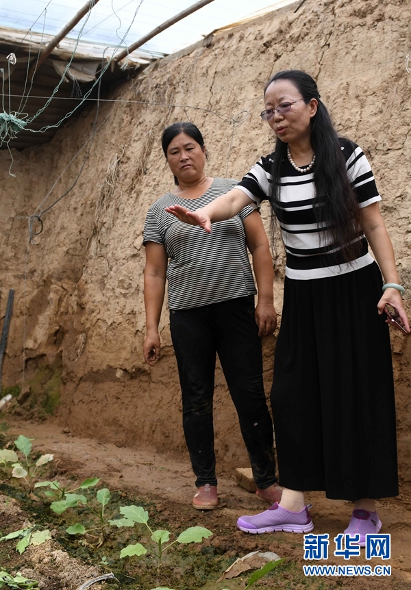 8月30日,中國(guó)農(nóng)業(yè)大學(xué)教授高紅麗(右)在紀(jì)臺(tái)鎮(zhèn)前老莊村指導(dǎo)種植戶趙秀蓮做好田間管理。 新華社記者 朱崢 攝