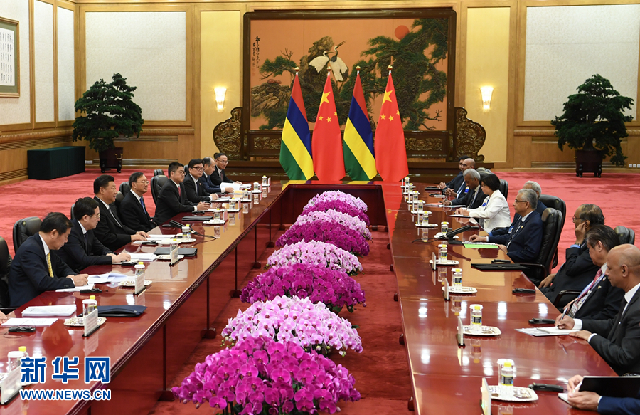 習近平指出,一個多月前,我成功訪問毛里求斯,深切感受到中毛友好深入人心,前景廣闊。雙方要充分發(fā)揮高層交往的政治引領作用,加強溝通交流,繼續(xù)在涉及彼此核心利益和重大關切問題上相互理解、相互支持,進一步提升政治互信,積極開展互利合作。中方將繼續(xù)支持毛里求斯在國際和地區(qū)事務中發(fā)揮積極作用,支持小島嶼國家落實好聯(lián)合國2030年可持續(xù)發(fā)展議程。