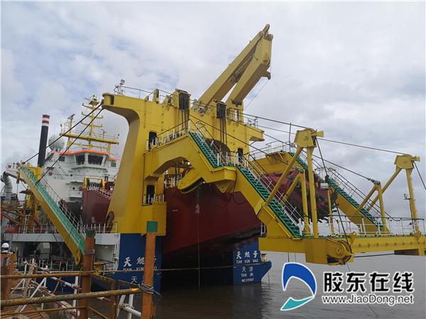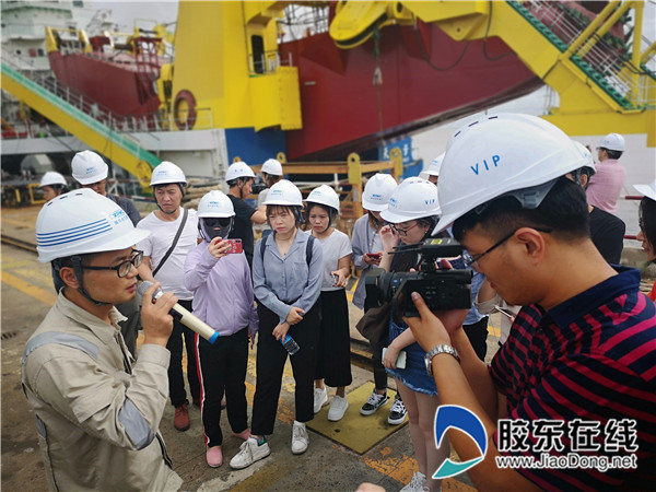 在啟東海工船舶工業(yè)園,隨著機(jī)械的轟鳴聲,呈現(xiàn)在采訪團(tuán)眼前的是船臺密布、塔吊林立、一派繁忙的景象。尤為引人矚目的,是大國重器“天鯤號”,巨大的船體以藍(lán)色為主,與碧海藍(lán)天共同構(gòu)成了一幅氣勢磅礴的畫卷。