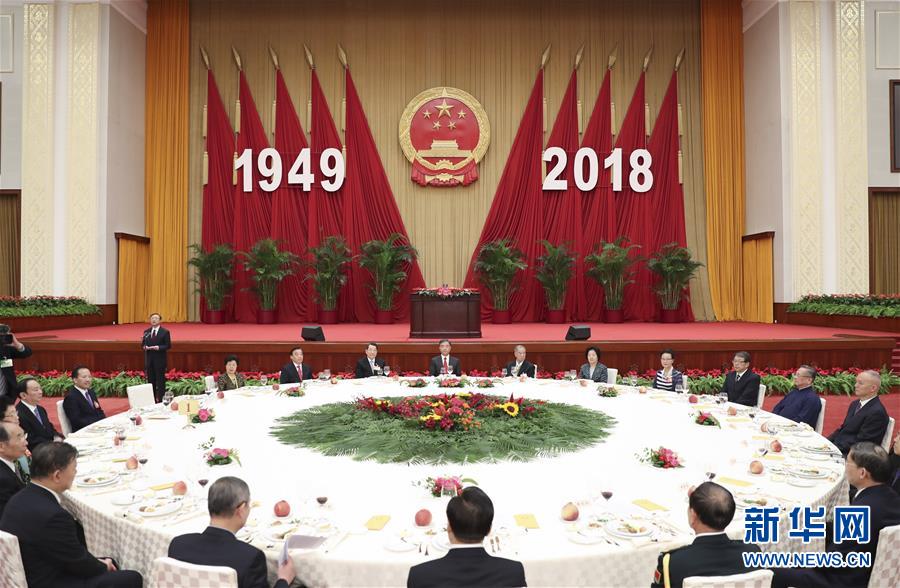 9月28日,全國政協辦公廳、中共中央統戰部、國務院僑辦、國務院港澳辦、國務院臺辦在北京人民大會堂聯合舉行國慶招待會。中共中央政治局常委、全國政協主席汪洋出席并講話。新華社記者丁海濤攝