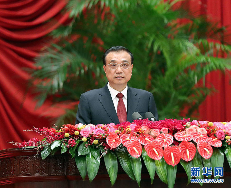 9月30日晚,國務院在北京人民大會堂舉行國慶招待會,熱烈慶祝中華人民共和國成立六十九周年。國務院總理李克強致辭。 新華社記者 劉衛兵 攝