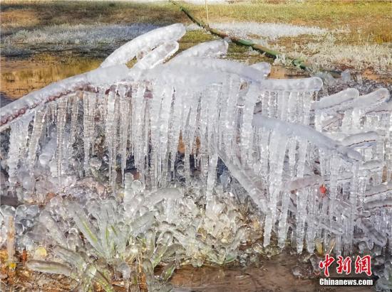 10月10日,甘肅肅南縣經歷一場降雨降溫天氣,出現大面積冰掛景觀。樹木花草被“冰封”,在陽光下宛如玉樹瓊花,將肅南縣妝點得如詩如畫。索國民 攝