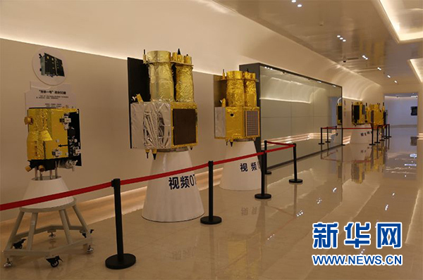 ↑↑在公司大廳顯著位置展示的“吉林一號”組星發射狀態等比模型。
