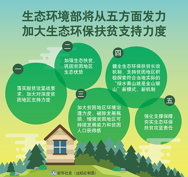 圖表:生態(tài)環(huán)境部將從五方面發(fā)力加大生態(tài)環(huán)保扶貧支持力度 新華社發(fā) 邊紀紅 制圖