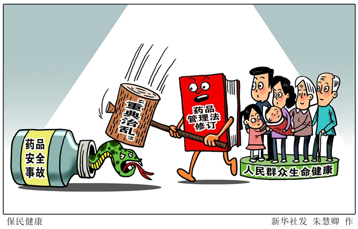 漫畫:保民健康 藥品管理法修正草案10月22日提請(qǐng)全國(guó)人大常委會(huì)審議,法律的修改為守住藥品安全底線、維護(hù)人民群眾生命健康,開(kāi)出了去疴的“猛藥良方”。 新華社發(fā) 朱慧卿 作