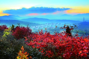 由于海拔高,氣溫低,北部西部山區(qū)的紅葉變色時間要比平原地區(qū)早10天到半個月,現(xiàn)在正是漫山紅遍的壯美秋色。