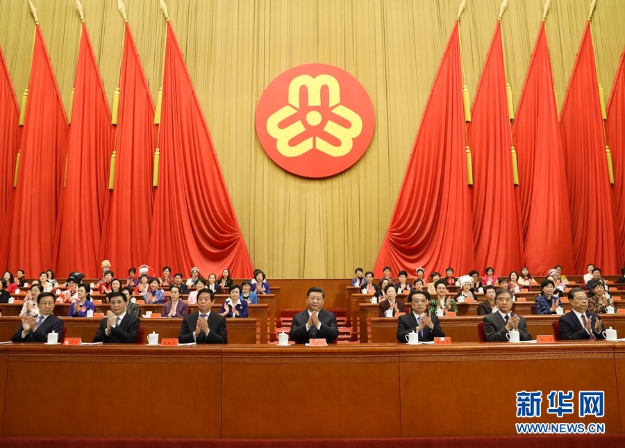 10月30日,中國婦女第十二次全國代表大會在北京人民大會堂開幕。習近平、李克強、栗戰(zhàn)書、汪洋、王滬寧、趙樂際、韓正等在主席臺就座,祝賀大會召開。 新華社記者 鞠鵬 攝