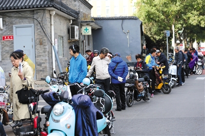 10月10日,新京報曾報道《新規實施在即 電動車扎堆上牌》,調查發現,國慶長假過后,有不少市民“扎堆兒”前往交管部門的非機動車登記站為電動自行車上牌,在部分登記站領牌甚至需要排隊數小時。
