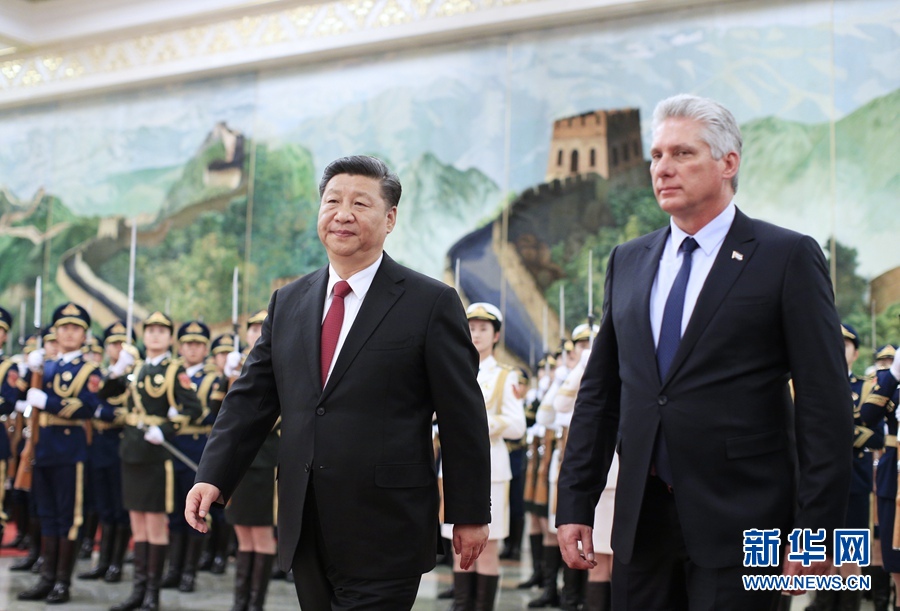 會談前,習近平在人民大會堂北大廳為迪亞斯-卡內爾舉行歡迎儀式。彭麗媛、白瑪赤林、王毅、夏寶龍、何立峰等參加。