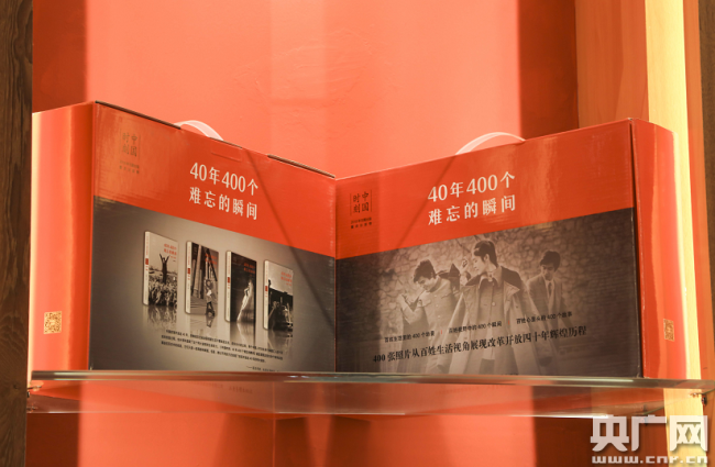 圖為展示書籍《40年400個難忘的瞬間》。(央廣網記者 荊宇琦 攝)