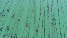 在城市結冰的主干道上,兩位環衛工人站在緩慢行駛的皮卡車上,用鐵锨拋灑著融雪劑。風雪飛揚,映照著他們微紅的臉龐。