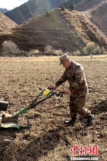 農(nóng)田不翻耕會影響來年莊稼收成,村民頓珠今年冬天因生病臥床,無法下地干活,便民服務隊官兵得知情況后,主動幫助他翻耕農(nóng)田,10余名官兵現(xiàn)學現(xiàn)做,用一天時間將頓珠家的農(nóng)田全部翻耕完成。