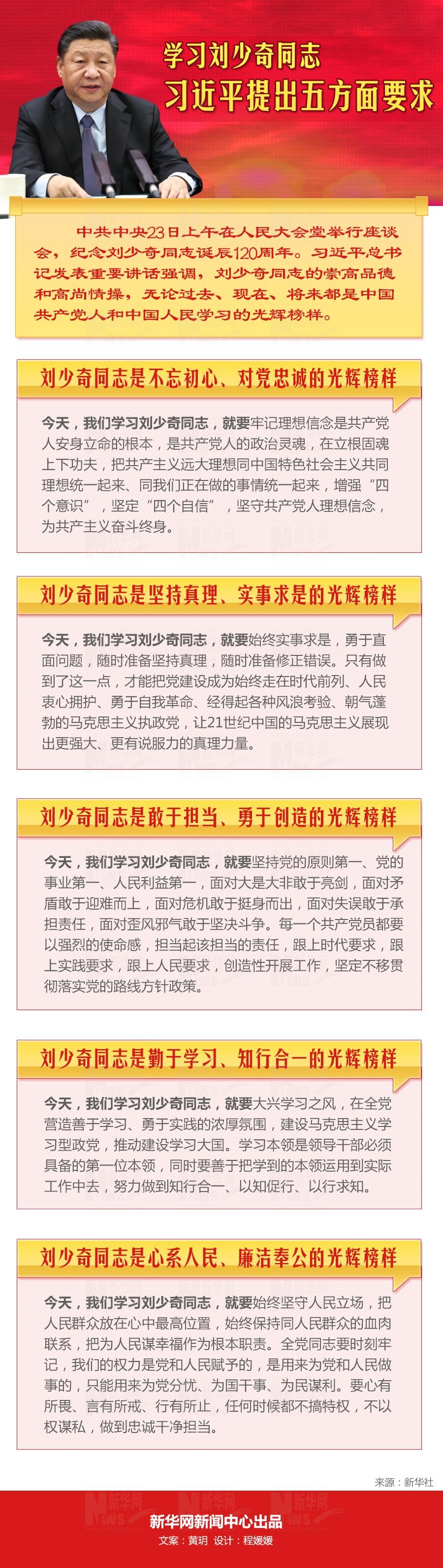 學(xué)習(xí)劉少奇同志 習(xí)近平提出五方面要求