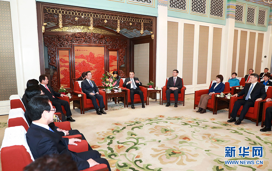 11月27日,國務(wù)院總理李克強在北京中南海紫光閣會見出席第二屆中韓省長知事會議的雙方代表。新華社記者 龐興雷 攝