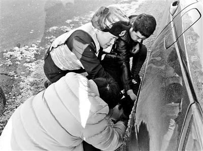 胡大鵬在執勤中幫助遇到困難的司機