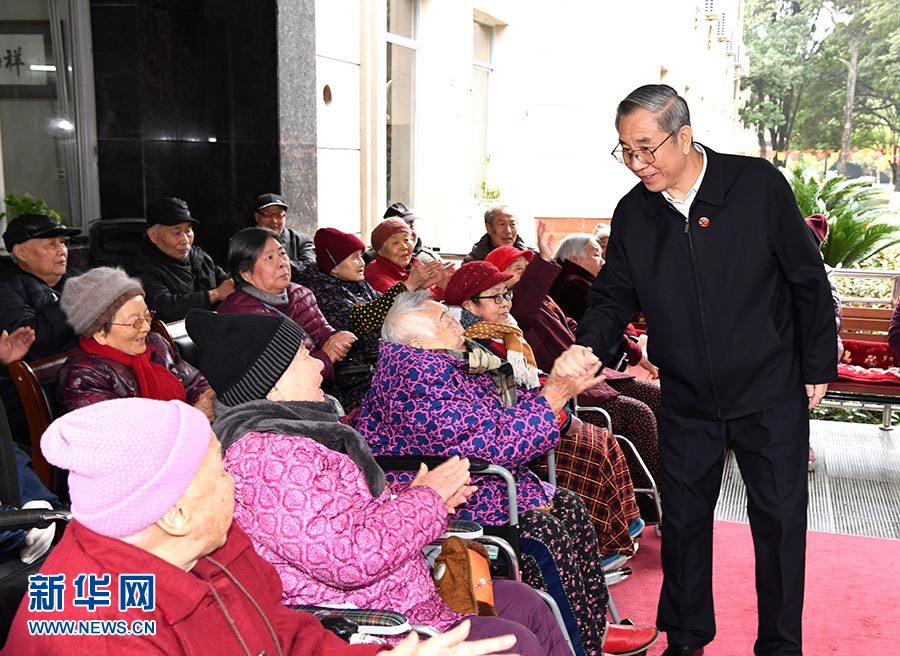 12月12日,全國政協(xié)副主席、中央代表團副團長馬飚率中央代表團五分團,帶著以習近平同志為核心的黨中央的親切關(guān)懷和全國各族人民的美好祝福,在賀州、桂林看望慰問各族各界干部群眾。這是馬飚在桂林市夕陽紅養(yǎng)老中心看望老人。 新華社記者 周華 攝