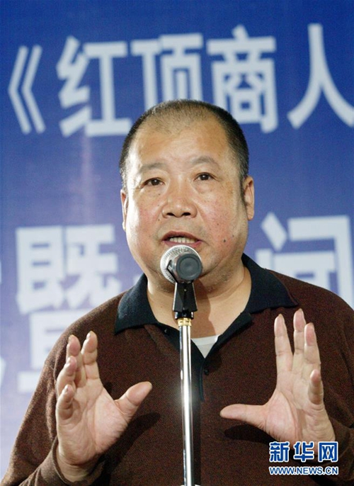 二月河在浙江杭州舉行的電視劇《紅頂商人胡雪巖》開(kāi)機(jī)儀式上講話(huà)(2004年10月18日攝)。新華社發(fā)