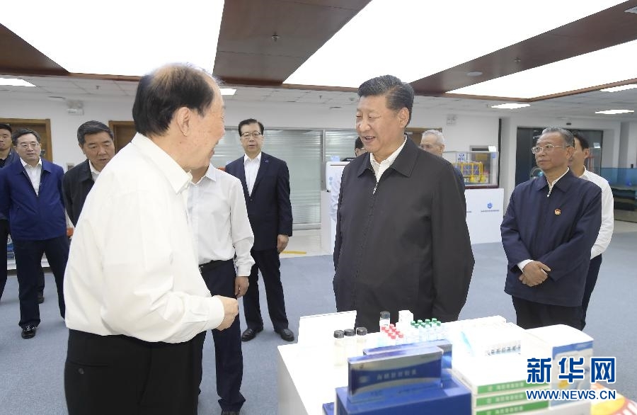 6月12日,習近平在青島海洋科學與技術試點國家實驗室,同科研人員親切交談。?新華社記者 李學仁 攝