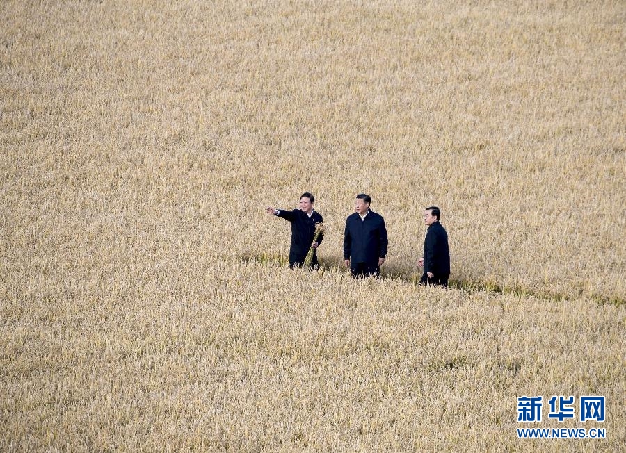 9月25日,習近平在黑龍江農墾建三江管理局了解糧食生產和收獲情況。 新華社記者王曄攝