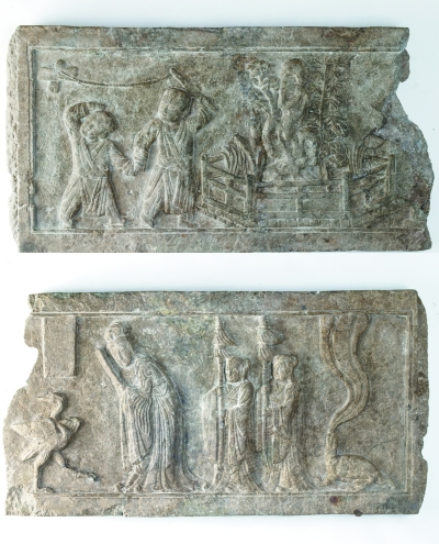 2014年起,考古隊對位于遼寧省北鎮(zhèn)市的新立遼代建筑遺址、琉璃寺遺址進(jìn)行了考古發(fā)掘。在新立遺址,發(fā)現(xiàn)了一組較完整的遼代四合院式建筑基址。考古領(lǐng)隊萬雄飛介紹,出土遺物的瓦件絕大多數(shù)為綠色琉璃,“證明該四合院建筑為一座滿鋪綠琉璃瓦的高等級建筑。正殿周圍還出土了大量鋪地花斑石殘塊,這種高級石材一般僅用于皇家宮殿和陵寢建筑。”正殿之上還出土了一些玉冊殘塊,有契丹小字和漢字兩套。遺址東側(cè)的坡地上出土了一件具有皇家氣派的大型石螭首。通過與遼慶陵的比較,并結(jié)合史料綜合分析,專家認(rèn)為這里就是遼代乾陵的陵前祭殿。