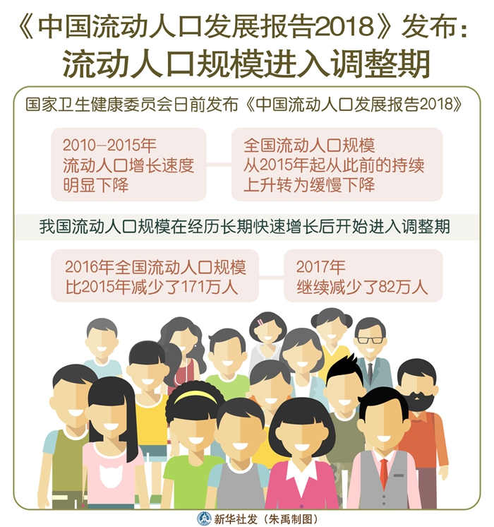 《中國(guó)流動(dòng)人口發(fā)展報(bào)告2018》發(fā)布:流動(dòng)人口規(guī)模進(jìn)入調(diào)整期 新華社發(fā) 朱禹 制圖