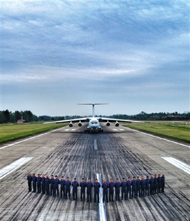 ↑“昆侖雄鷹大隊”飛行三大隊飛行員與飛機合影
