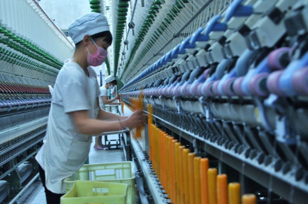 2018-03-28,河南省禹州市紡織廠。美麗的紡織女工,工作時巧手如梭。作者:宜家