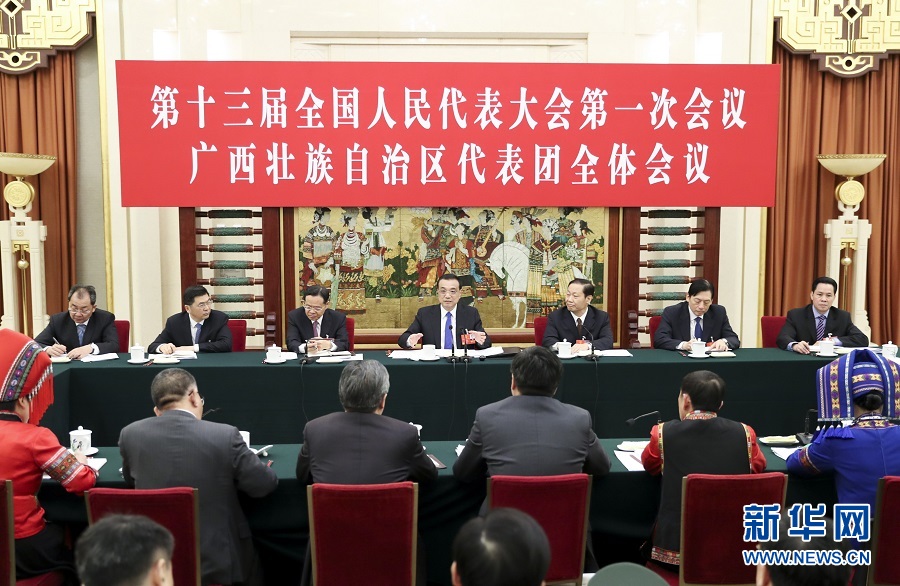 3月6日,中共中央政治局常委、國務(wù)院總理李克強參加十三屆全國人大一次會議廣西代表團的審議。 新華社記者 丁海濤 攝