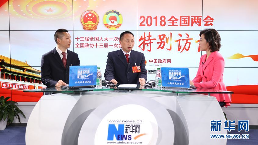 ??? 3月5日,神龍汽車有限公司武漢工廠制造一部沖焊分廠鈑金工楊祉剛(左)做客新華網2018全國兩會特別訪談。新華網 張斌/攝