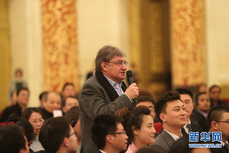 民主黨派中央和全國工商聯(lián)領(lǐng)導(dǎo)人記者會(huì)3月6日下午在人民大會(huì)堂金色大廳舉行,邀請民革中央主席萬鄂湘、民盟中央主席丁仲禮、民建中央主席郝明金、民進(jìn)中央主席蔡達(dá)峰、農(nóng)工黨中央主席陳竺、致公黨中央主席萬鋼、九三學(xué)社中央主席武維華、臺(tái)盟中央主席蘇輝、全國工商聯(lián)主席高云龍回答記者提問。圖為俄羅斯塔斯社記者提問。新華網(wǎng)/中國政府網(wǎng)?陳杰 攝?