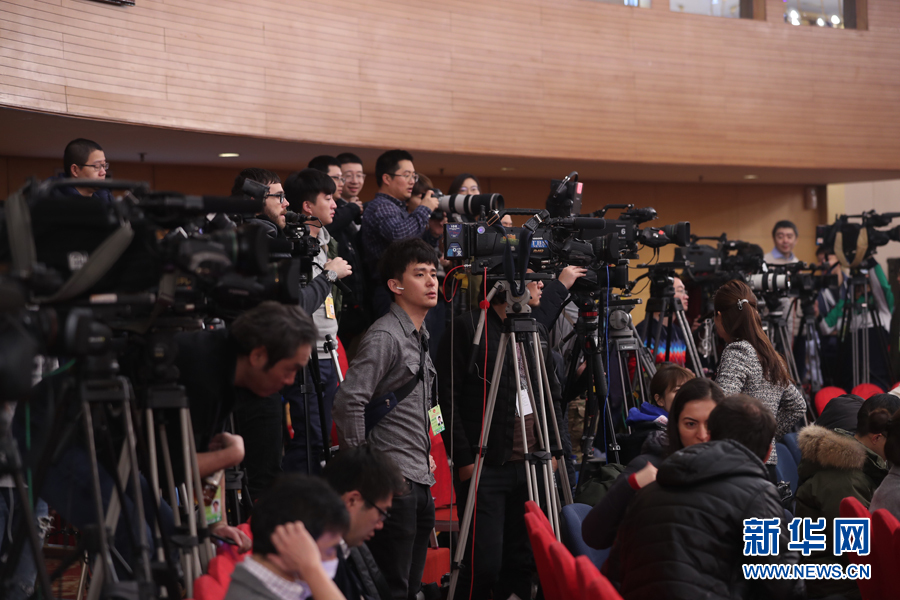 十三屆全國人大一次會議新聞中心3月8日上午10時在梅地亞中心多功能廳舉行記者會,邀請外交部部長王毅就“中國外交政策和對外關系”回答中外記者提問。圖為記者在現場。 新華網/中國政府網 陳杰 攝