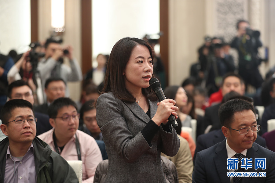 全國政協十三屆一次會議3月8日15:00在人民大會堂新聞發布廳舉行第二場記者會,邀請中央財經領導小組辦公室副主任楊偉民,中國進出口銀行董事長、黨委書記胡曉煉,農業部原副部長陳曉華,全國工商聯副主席、清華大學經濟管理學院院長錢穎一,中國中化集團有限公司黨組書記、董事長寧高寧就推動經濟高質量發展回答記者提問。圖為第一財經記者提問。新華網/中國政府網 翟子赫 攝