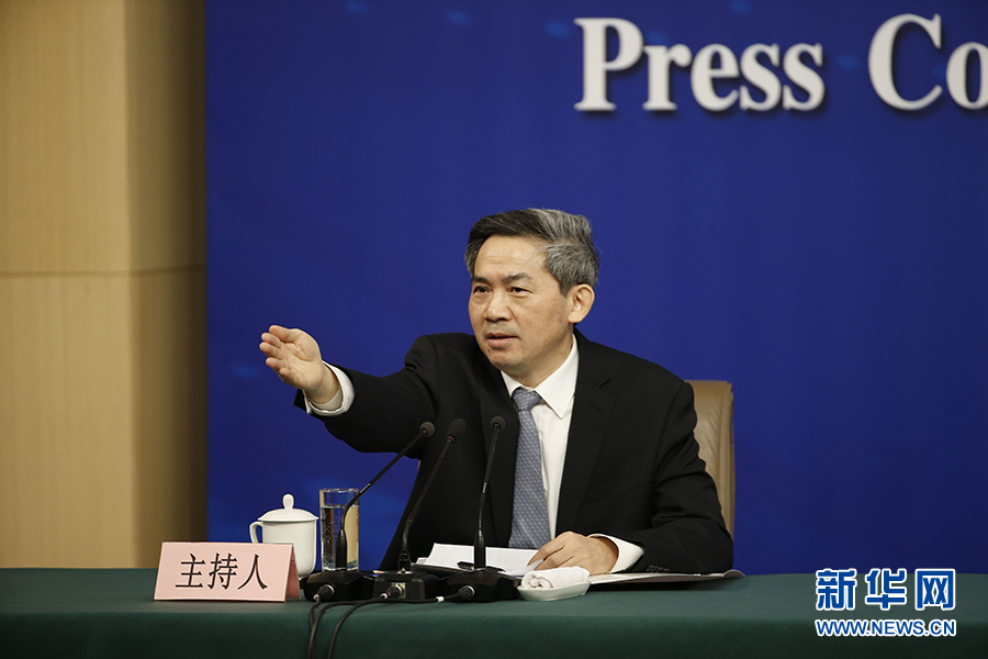 十三屆全國人大一次會議新聞中心于3月8日上午10時在梅地亞中心多功能廳舉行記者會,邀請外交部部長王毅就“中國外交政策和對外關系”回答中外記者提問。圖為記者會主持人何紹仁。新華網(wǎng)/中國政府網(wǎng)陳杰 攝