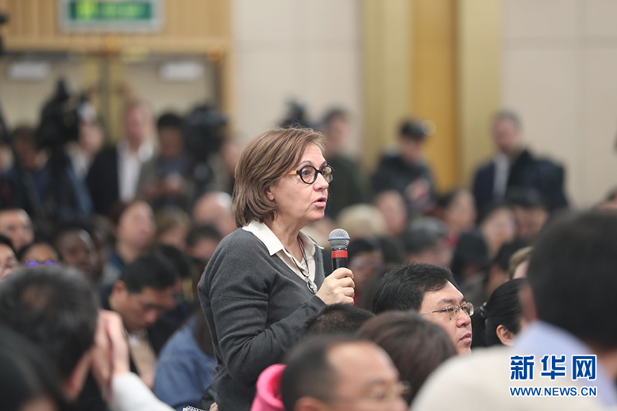 十三屆全國(guó)人大一次會(huì)議新聞中心于3月8日上午10時(shí)在梅地亞中心多功能廳舉行記者會(huì),邀請(qǐng)外交部部長(zhǎng)王毅就“中國(guó)外交政策和對(duì)外關(guān)系”回答中外記者提問(wèn)。圖為法蘭西廣播公司記者提問(wèn)。新華網(wǎng)/中國(guó)政府網(wǎng)陳杰 攝