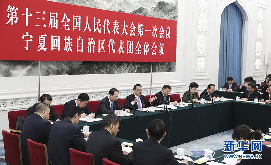 3月10日,中共中央政治局常委、國務院總理李克強參加十三屆全國人大一次會議寧夏代表團的審議。 新華社記者 丁林 攝