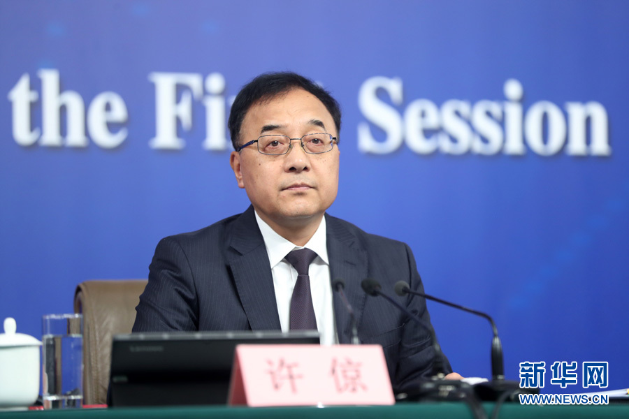 十三屆全國人大一次會議新聞中心于10日上午10時45分在梅地亞中心多功能廳舉行記者會,邀請科技部部長萬鋼、政策法規(guī)與監(jiān)督司司長賀德方、創(chuàng)新發(fā)展司司長許倞就“加快建設(shè)創(chuàng)新型國家”相關(guān)問題回答中外記者提問。圖為科技部創(chuàng)新發(fā)展司司長許倞。新華網(wǎng)/中國政府網(wǎng) 翟子赫 攝