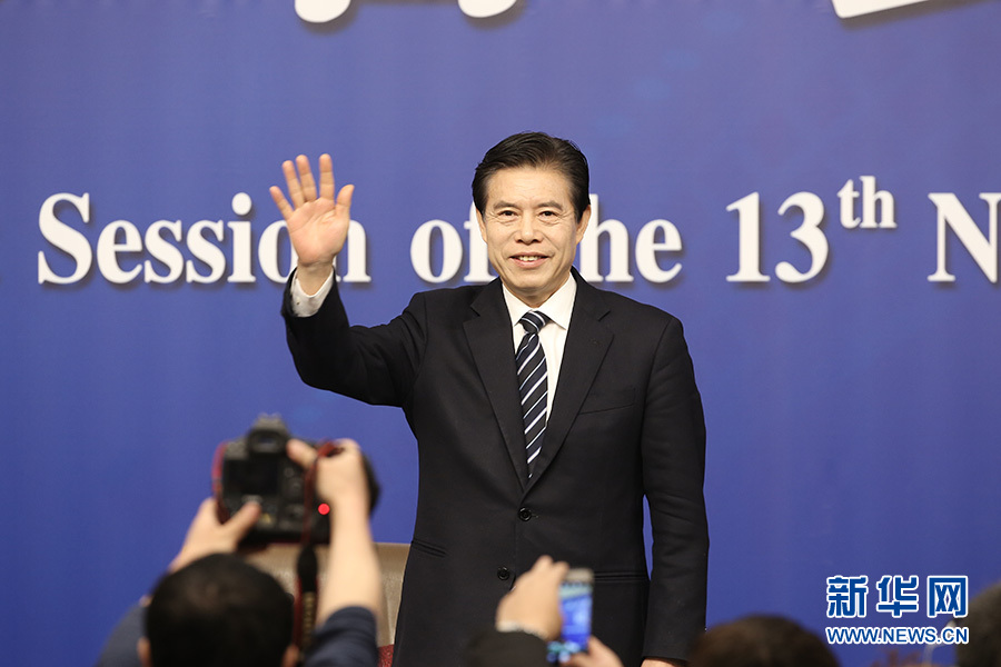十三屆全國人大一次會議新聞中心3月11日10時在梅地亞中心多功能廳舉行記者會,邀請商務部部長鐘山、副部長兼國際貿易談判副代表王受文、副部長錢克明就“推動形成全面開放新格局 推動商務事業高質量發展”相關問題回答中外記者提問。圖為商務部部長鐘山。新華網/中國政府網?陳杰?攝?